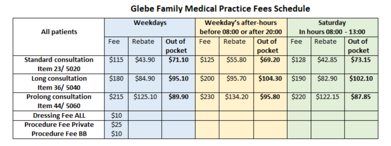 As such, Glebe Family Medical Practice is a private billing medical practice and payment is expected on the day of your consultation. Our consultation fees vary depending on the time taken, and complexity of your visit.