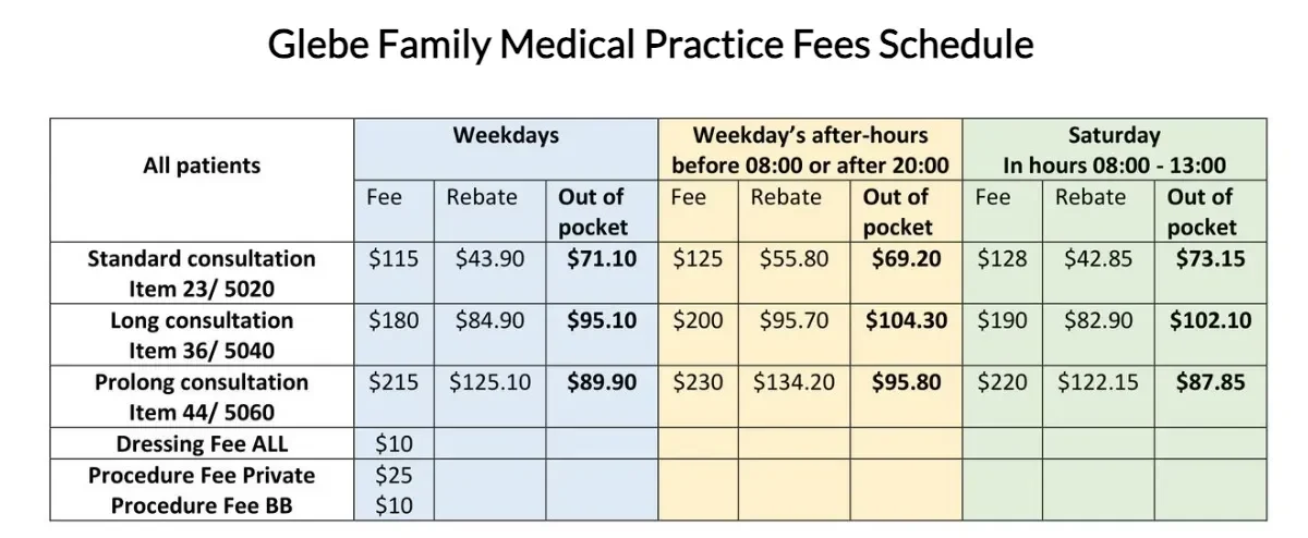 As such, Glebe Family Medical Practice is a private billing medical practice and payment is expected on the day of your consultation. Our consultation fees vary depending on the time taken, and complexity of your visit.
